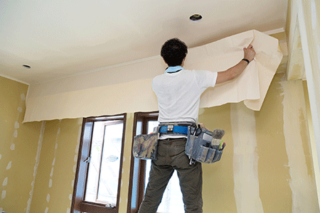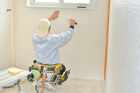 壁や天井に用いられている材質によって材料を選定し、下地処理を行い本塗装していきます。